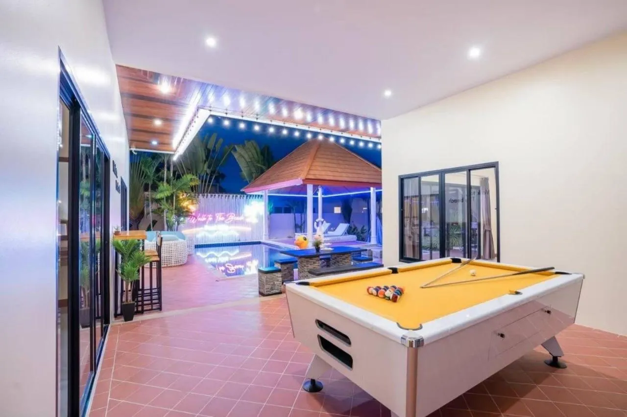 Удобства: Частный бассейн, бильярд, зона барбекю и другие места для отдыха.